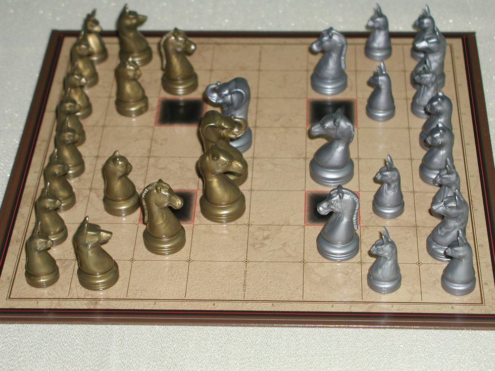 is printed with the Arimaa pattern and the other side has a checkered pattern
