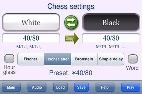 You can even replace a physical game clock with this inexpensive app that has more features than even the most expensive digital game clock. This app has special support for Chess, Checkers, Draughts, Backgammon and Arimaa, but can be used for any two player game. It provides predefined settings for standard time controls used by FIDE, World Backgammon Association, American Checker Federation, FMJD and other organizations.